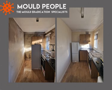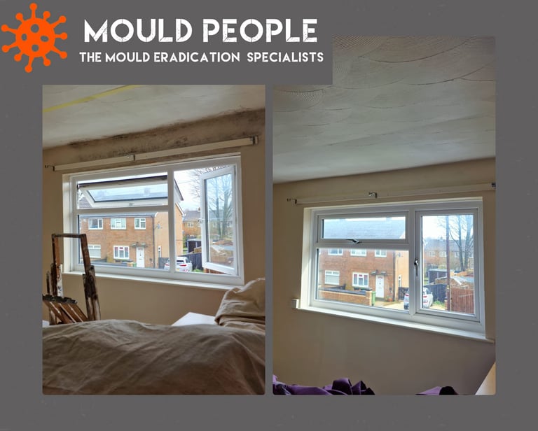 Customer contacted Mould People after severe mould developed in a property that had been left empty, with the source traced to long-neglected guttering. We carried out a full chemical treatment, sealed the affected surfaces, and redecorated the interior to prepare it for sale.